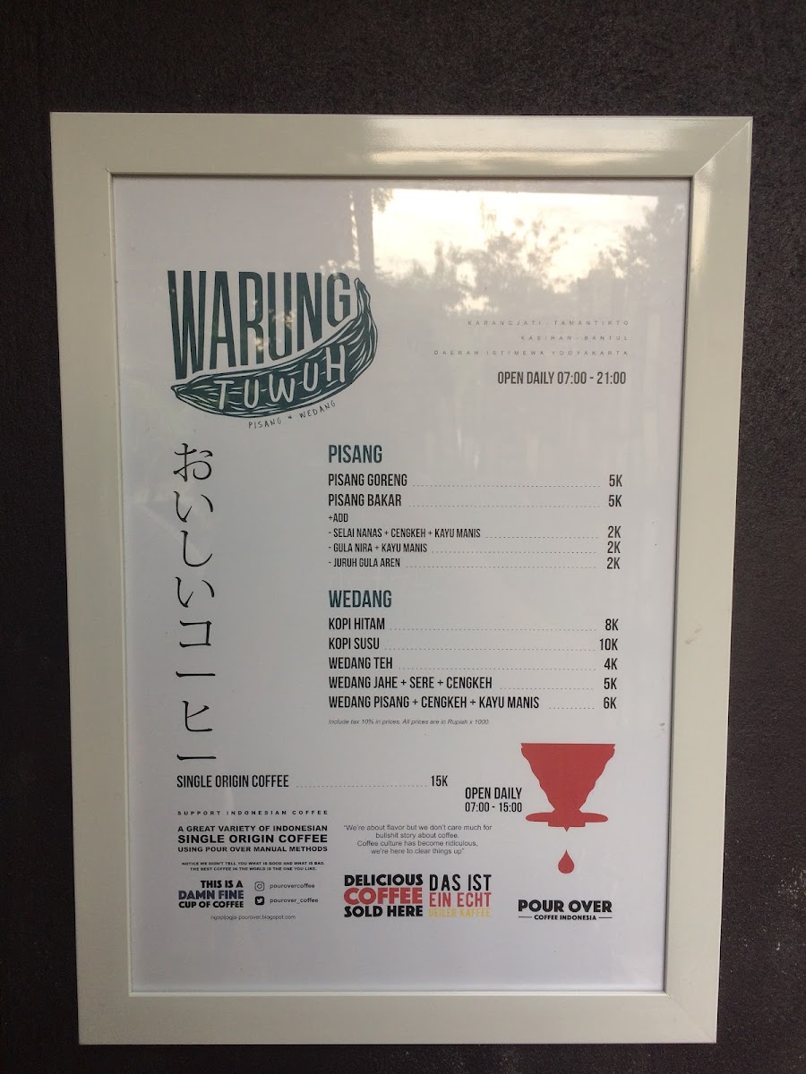 Welcome to Warung Tuwuh, a hidden gem nestled in the serene community of Kp. Karangjati, Bantul, Indonesia. This charming cafe emits a tranquil vibe that wraps around you like a warm hug from the moment you step in. You’ll find an oasis of peace where the soothing sounds of nature provide the perfect backdrop for a delightful coffee break or a light snack.